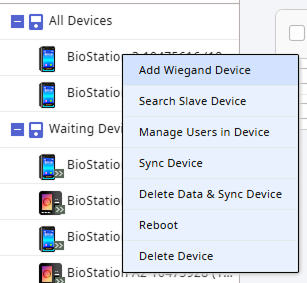 Reconnect: Reconnect the selected device. This option is available when one device is selected. Use this feature when the connection to BioStar X is lost.