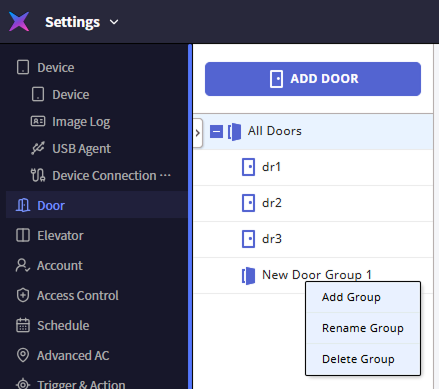 Deleting a door group removes all doors included in the group. To avoid deleting the doors, move them to another group before deleting the group.