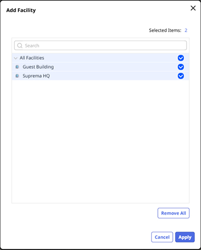 When adding a zone, at least one facility, entrance, or camera must be configured.