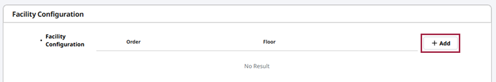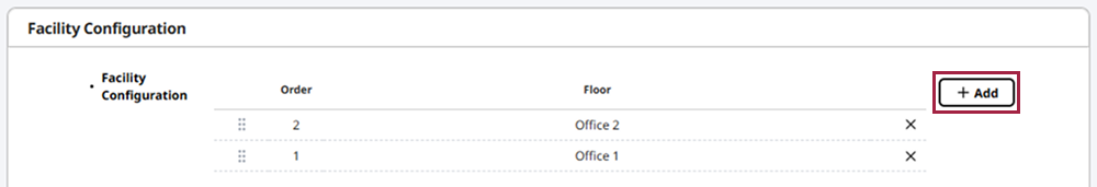 Configure facility and arrange floors. Arrange floors sequentially to represent the actual layout of the facility. Configuring facilities provides the feature to select facilities placed on the map in the Monitoring page and enter each floor for monitoring.