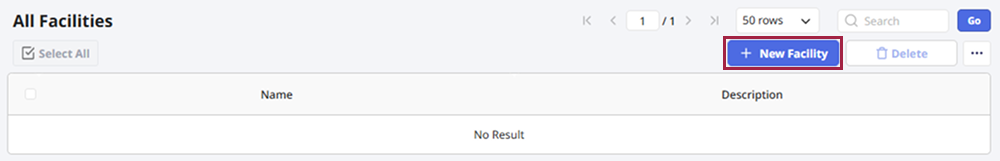 Enter the name and description of the facility you want to add in the Information section of the Add New Facility screen.