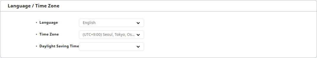 Language / Time Zone: Interface language and time zone, daylight saving time