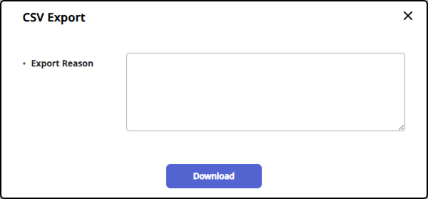 When the CSV export window appears, enter Export Reason(optional) and click the Download button.