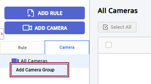 Click the checkbox on the far left of the cameras to be added to the group in the camera list. You can select more than one camera.