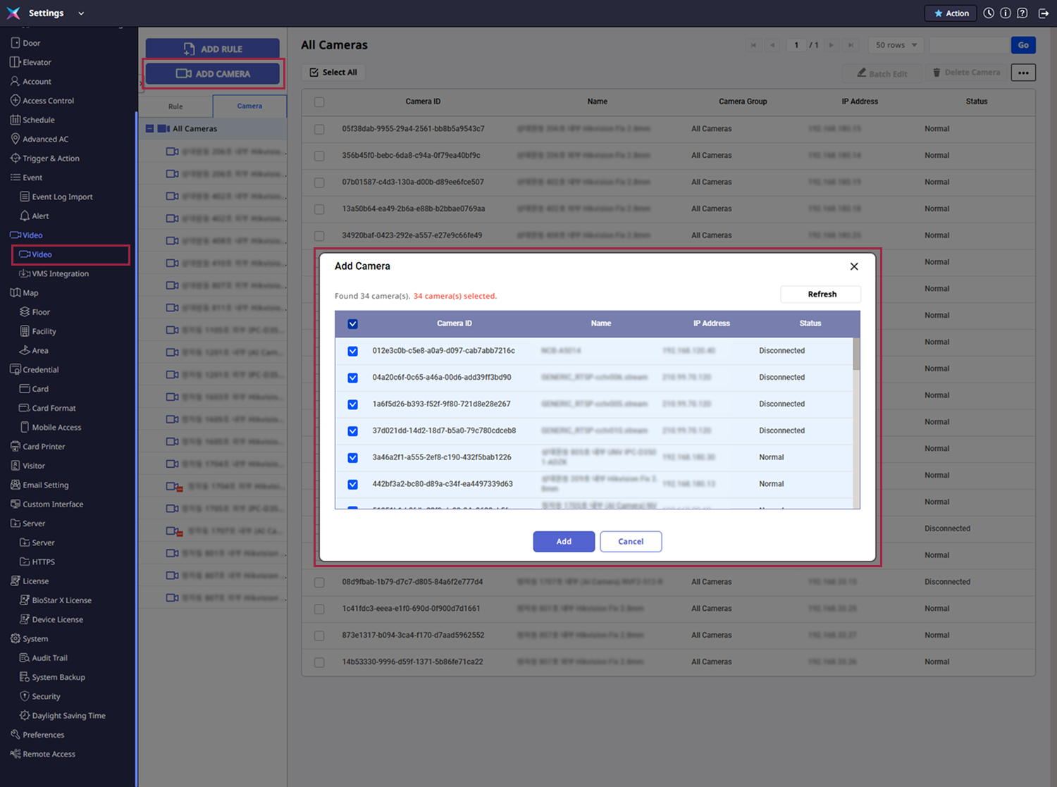 After completing the VMS integration, select and set up the cameras to be used in BioStar X. Appropriate camera configurations enable the use of the following security management features.
