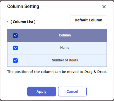When the Column Setting window appears, you can click the checkboxes of the columns you want to display to add or set them to be hidden. You can also change the order of columns via drag and drop.