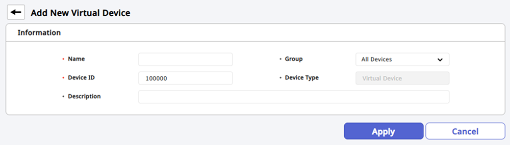 Device ID: Enter the unique ID of the virtual device. It must be specified within a range that does not duplicate with the existing device ID.