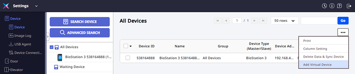 By using the virtual device feature, you can log events such as clock-in and clock-out directly to BioStar X from mobile apps or third-party services when integrating the attendance management feature. You can systematically manage event logs without a physical device, which is useful for integration with external systems.