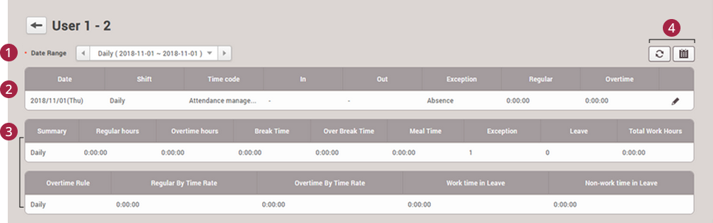 Daily attendance record: Shows the daily attendance record.