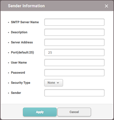 Port(default:25): Enter the port number of the SMTP server. The SMTP server address is in the format
