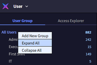 You can expand or collapse the user group list. In the User Group tab, select All Users and right-click. In the popup menu, click Expand All or Collapse All.
