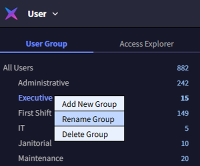 Select the group you want to rename from the User Group list of the left sidebar and right-click.