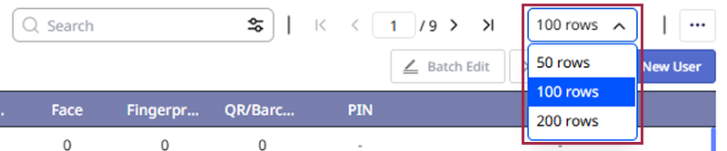 You can change the number of users displayed in the user list. Select the desired number of users from the list box at the top right of the screen. Available options are 50, 100, or 200 users.