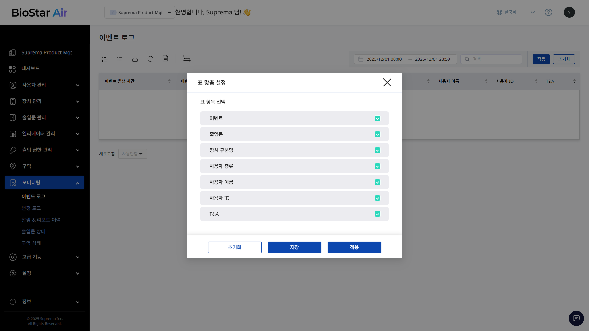 근태 이벤트는 이벤트 로그에 기록되며, 이를 검토하거나 CSV 파일로 내보낼 수 있습니다.