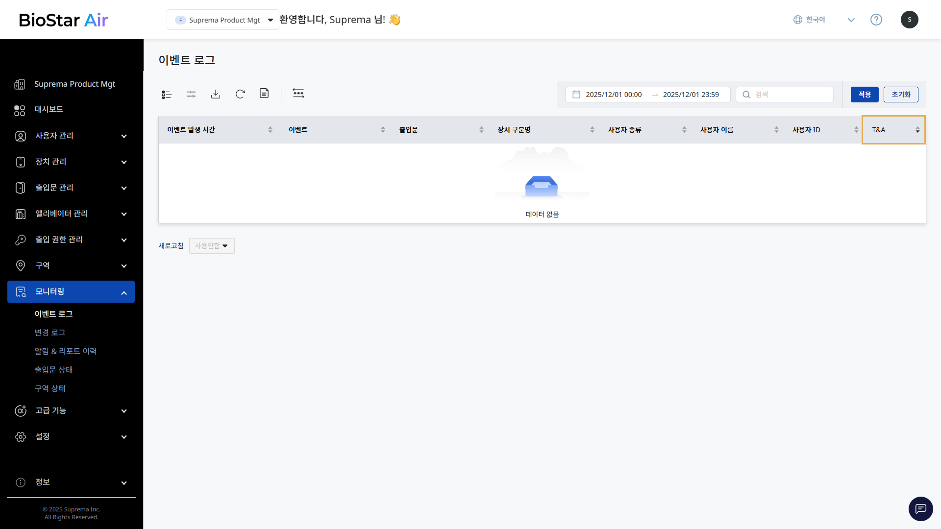 화면 왼쪽 사이드바에서 모니터링 → 이벤트 로그를 클릭하세요.