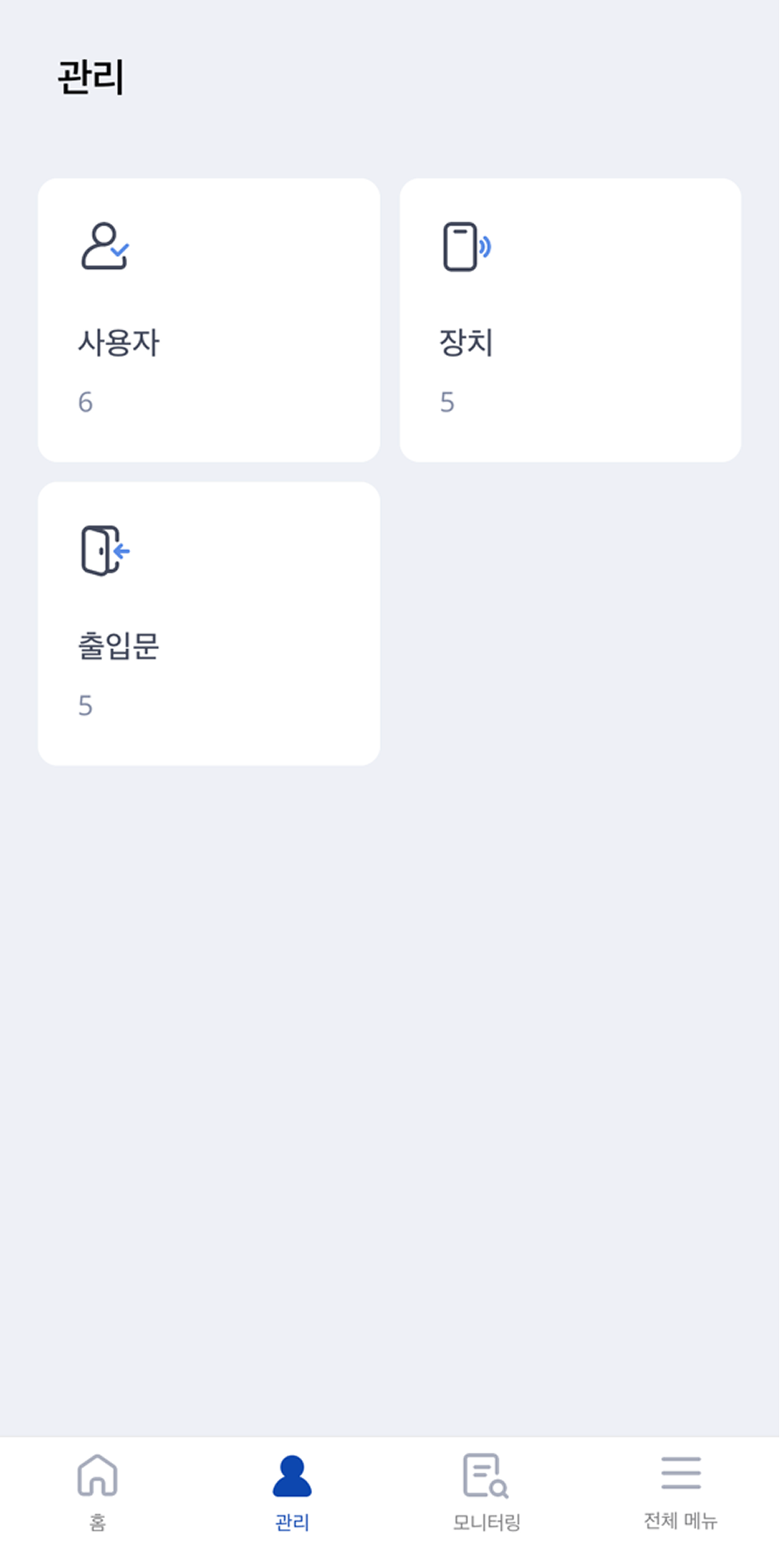 BioStar Air 앱 초기 화면에서 하단의 관리를 탭하세요.