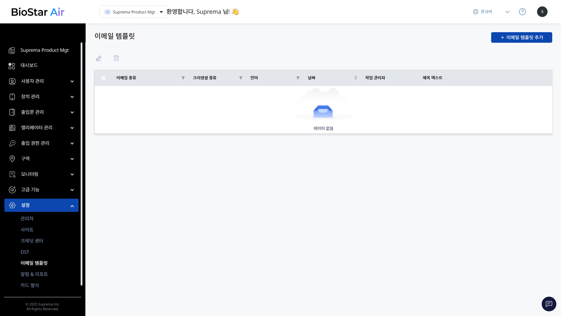 화면 왼쪽 사이드바에서 설정 → 이메일 템플릿을 클릭하세요.