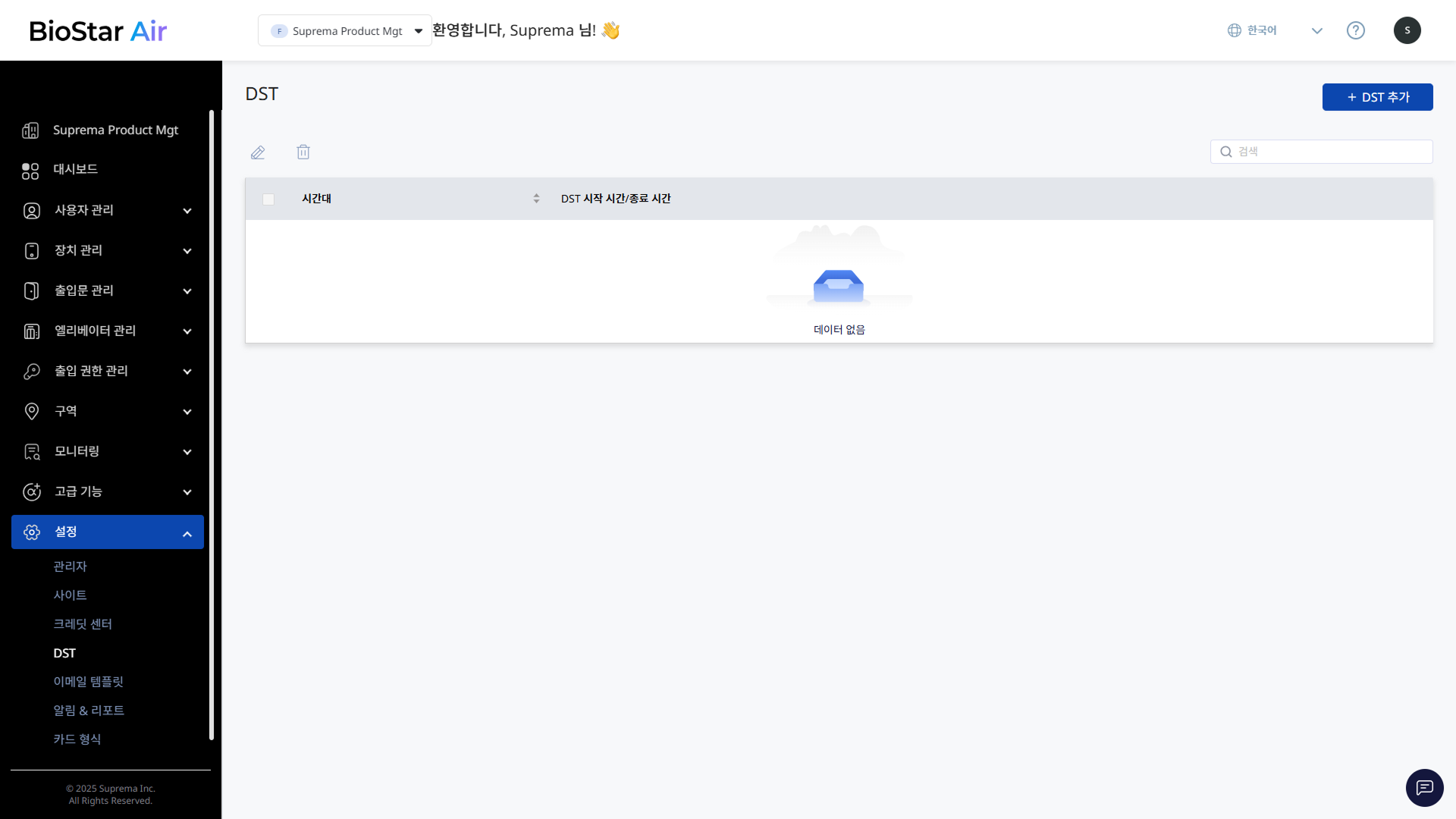 화면 오른쪽 상단의 DST 추가 버튼을 클릭하세요.