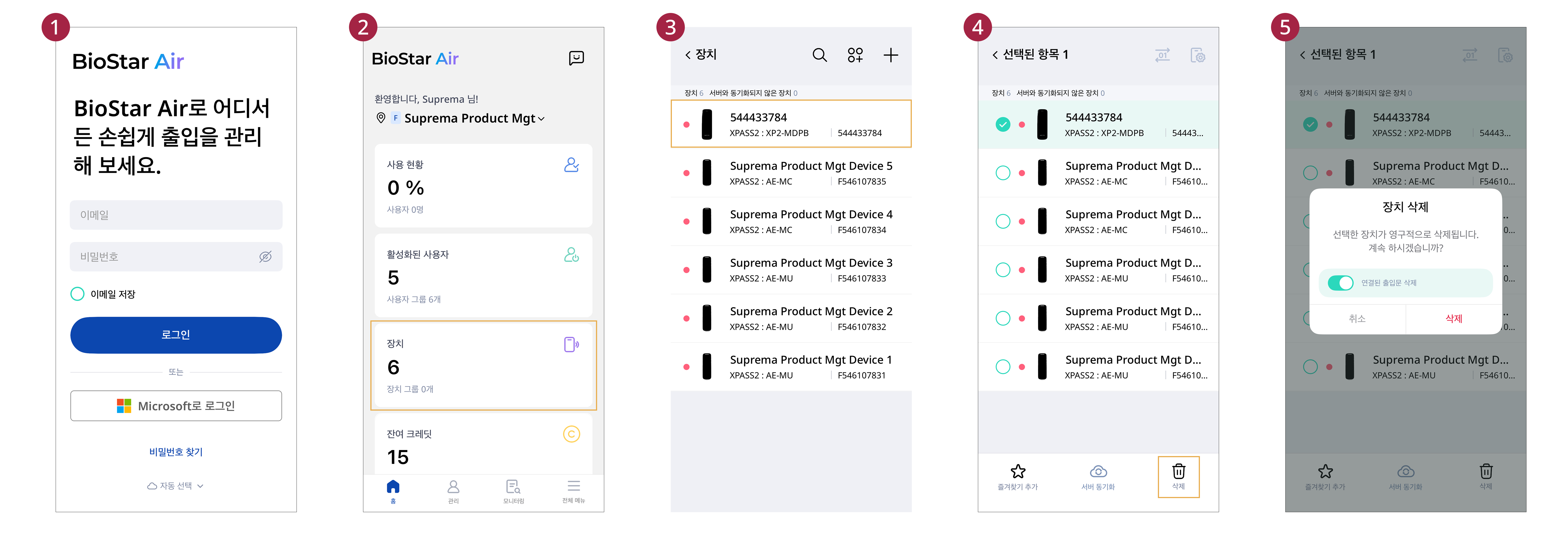 장치 등록 및 삭제하기