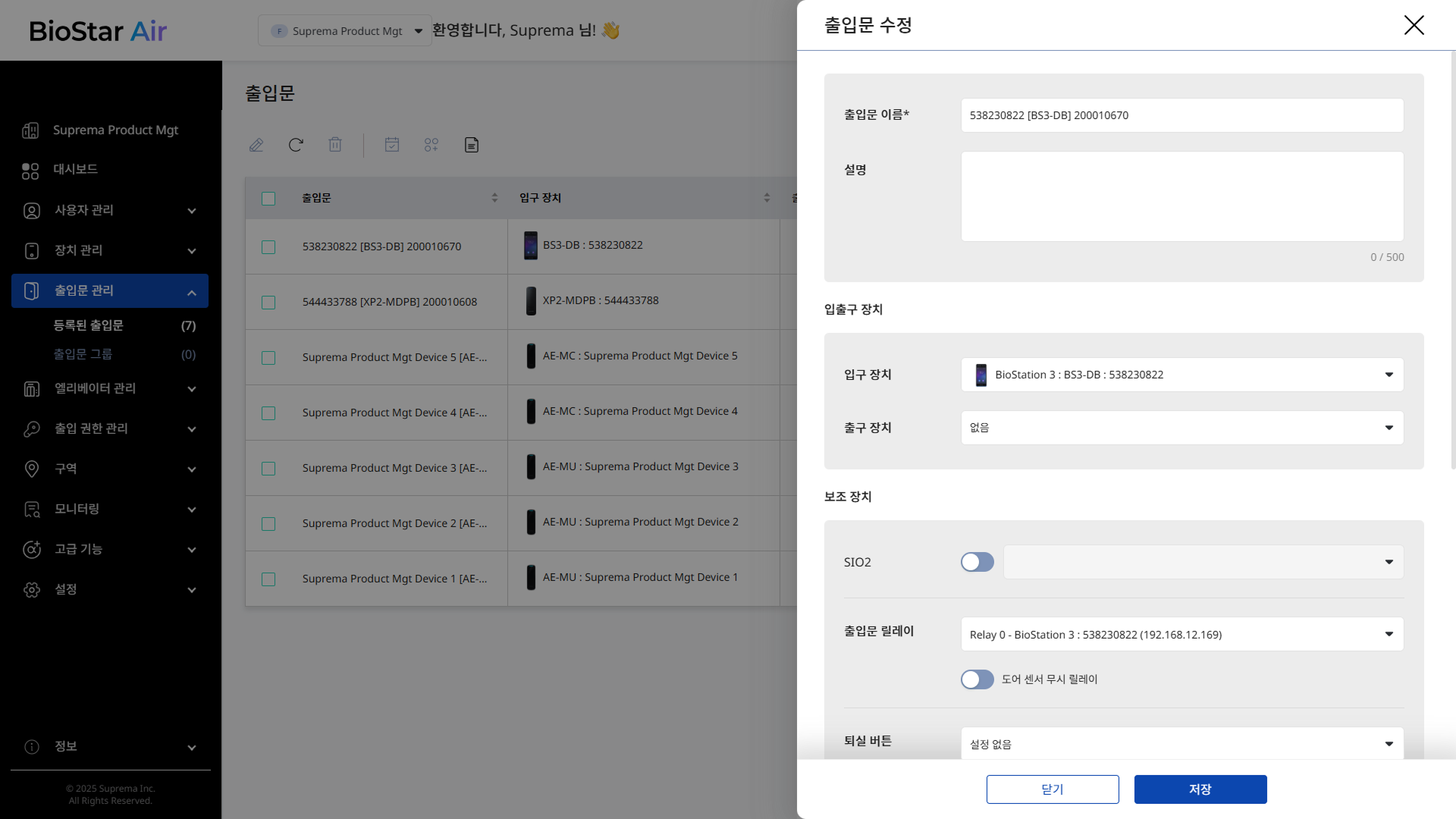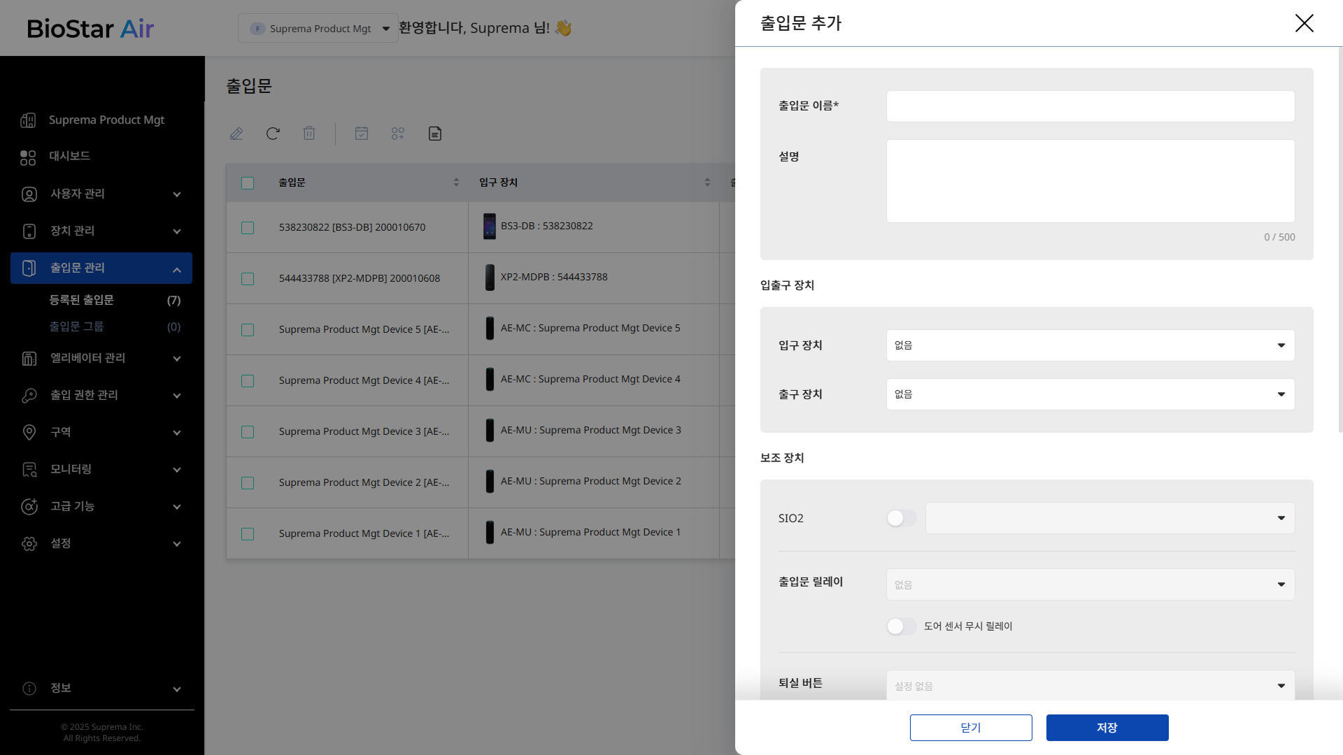 출입문 설정을 저장하고 추가하려면 저장 버튼을 클릭하세요.