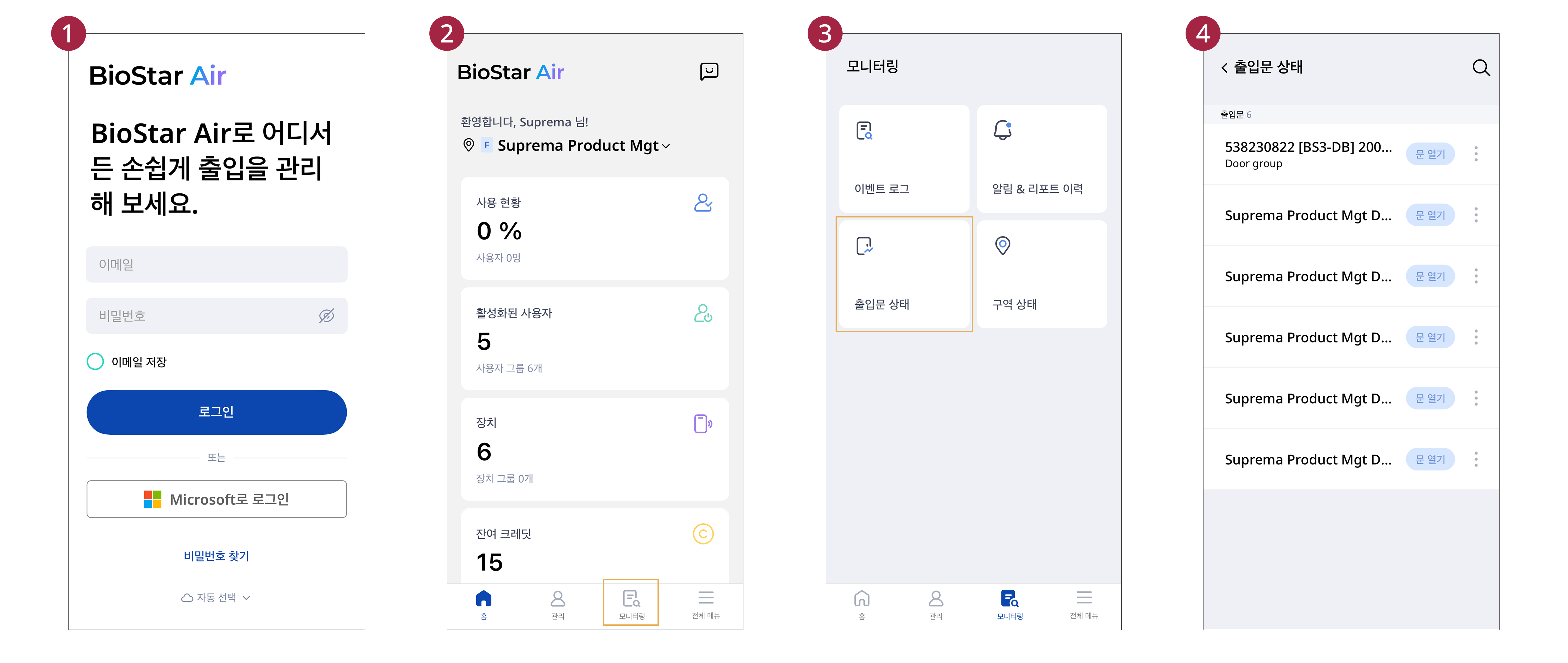 각 출입문에서는 아래 항목을 확인할 수 있습니다.
