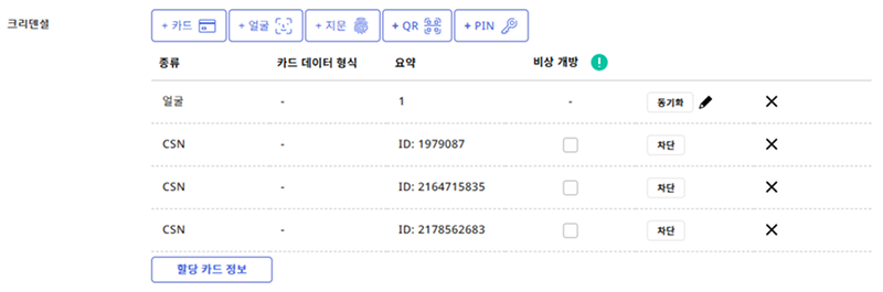 크리덴셜 항목을 수정하려면 버튼을 클릭하고, 삭제하려면 버튼을 클릭하세요.