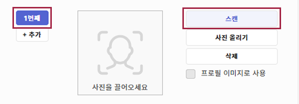 두 명의 얼굴이 화면에 동시에 나타나지 않도록 주의하세요. 한 번에 한 사람씩 등록하세요.