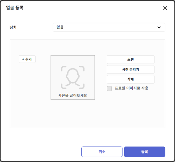 장치: 얼굴을 등록할 장치를 선택하세요.