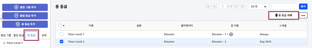 층 등급을 등록하기 전에 엘리베이터를 설정해야 합니다. 엘리베이터 등록에 대한 자세한 내용은 다음 문서를 참고하세요.
