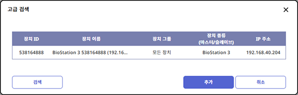 BioStar X와 같은 네트워크에 있는 장치를 자동으로 검색하고 등록할 수 있습니다.