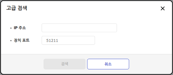고급 검색 창이 나타나면 등록할 장치의 IP 주소와 포트 번호를 입력하세요.