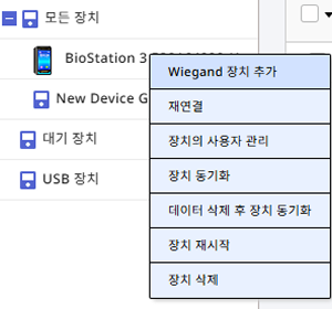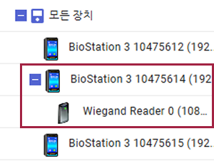 선택한 장치의 하위로 등록한 Wiegand 장치가 나타납니다.