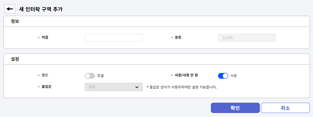 인터락으로 설정된 출입문은 화재 경보 설정 외에 다른 설정에서 사용할 수 없습니다.