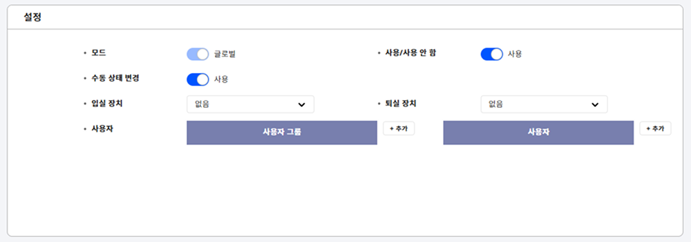 사용자: 입실할 수 있는 사용자 그룹 또는 개별 사용자를 선택할 수 있습니다.