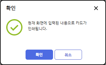 카드 인쇄 여부를 묻는 팝업창이 나타나면 확인 버튼을 클릭하세요.