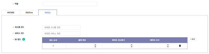 ID 필드: 카드에서 특정 영역을 읽을 수 있도록 설정합니다. + 추가 버튼을 클릭해 읽고자 하는 최대 8개 블록에 대해 설정할 수 있습니다.