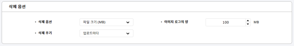 이미지 로그의 양: 삭제 옵션에서 설정한 조건의 단위를 설정하세요.