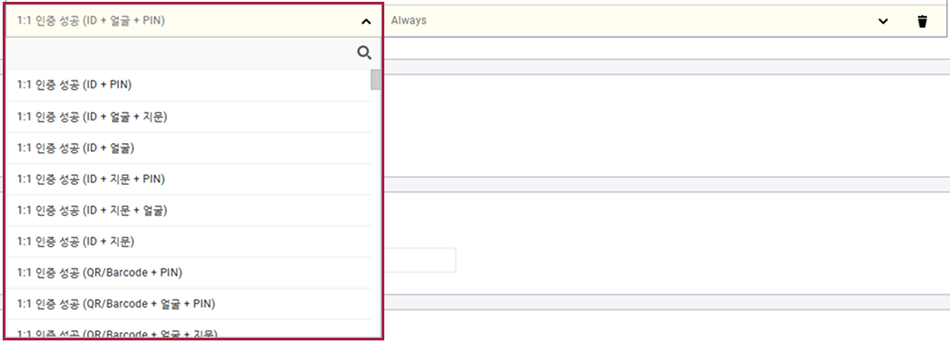 목록 하단에 이벤트가 추가되면 원하는 이벤트의 버튼을 클릭하고 원하는 항목을 선택하세요.