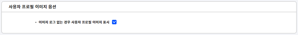 사용자 프로필 이미지 옵션 섹션의 이미지 로그 없는 경우 사용자 프로필 이미지 표시 항목의 체크박스를 클릭하세요.