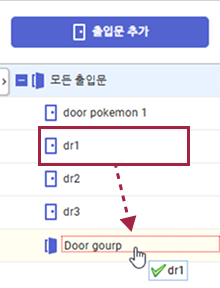 선택한 출입문이 그룹으로 이동합니다.