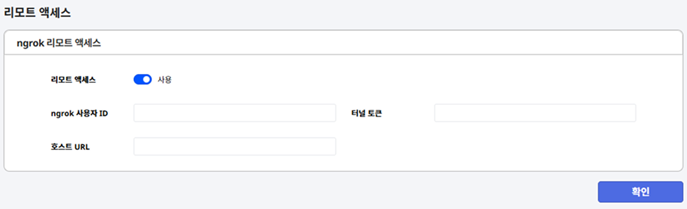 리모트 액세스(Remote Access) 기능은 제3자 서비스인 ngrok의 터널링 서비스를 통해 제공됩니다. 기능 사용 전 반드시 Remote Access 기능 사용 동의 약관을 확인하세요.