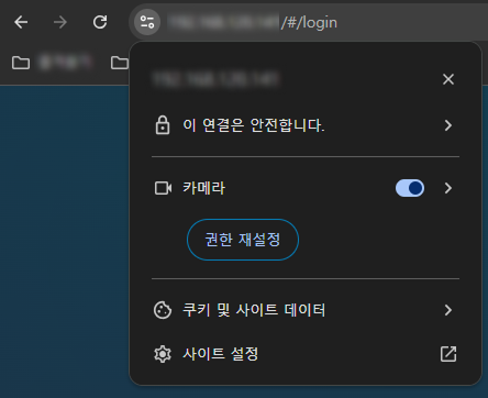 Video Management System(VMS)을 브라우저를 통해서 접속했을 때 '안전하지 않음' 경고가 표시될 때