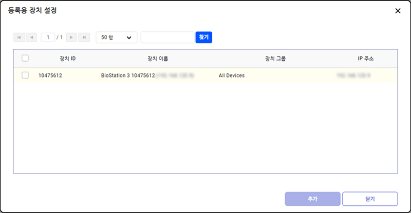 지문이나 얼굴, 카드를 등록할 때 자주 사용하는 장치를 등록용 장치 설정 옵션에 추가해 편리하게 사용할 수 있습니다.