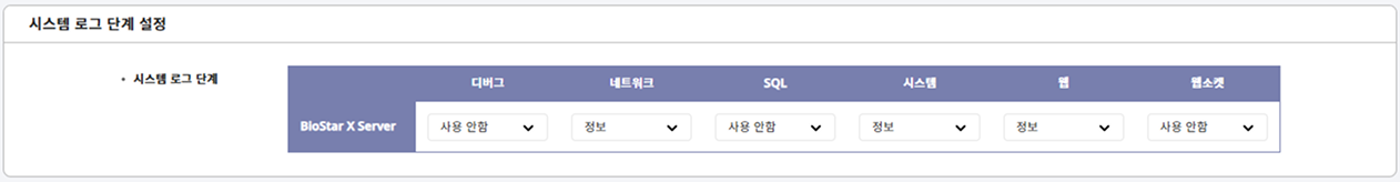 시스템 로그 단계 설정 섹션에서는 데이터베이스에 저장되는 시스템 로그의 레벨을 설정할 수 있습니다.