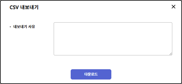 CSV 내보내기 창이 나타나면 내보내기 사유(선택 사항)을 입력하고 다운로드 버튼을 클릭하세요.