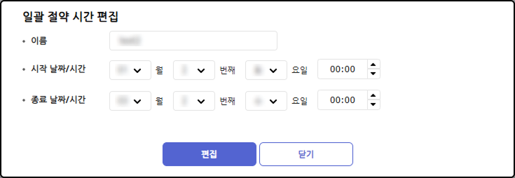 일괄 절약 시간 편집 창이 나타나면 원하는 항목을 수정하세요.