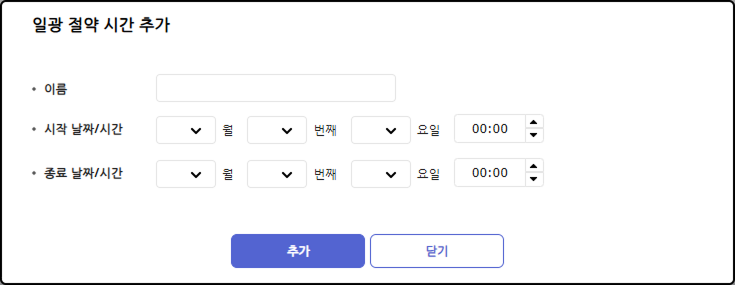 일광 절약 시간(Daylight Saving Time, DST)을 설정하여 현지 법정 시간에 맞춰 시스템 시간을 자동으로 조정할 수 있습니다. 이를 통해 출입 기록의 정확성을 보장하고 다른 시스템과의 시간 동기화 문제를 방지할 수 있습니다.