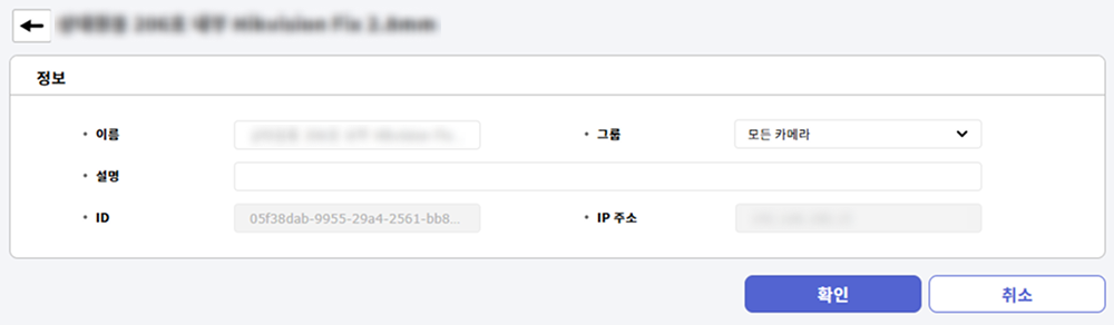 카메라 아이디와 IP 주소는 수정할 수 없습니다.