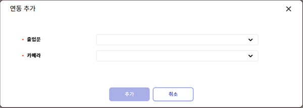 연동 추가 창이 나타나면 출입문을 선택하고 해당 출입문과 연관된 카메라를 선택하세요.