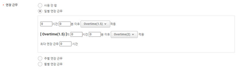 기타 근무 규칙을 설정하세요. 일별, 주별, 월별 단위로 적용할 연장 근무 규칙을 설정할 수 있습니다.